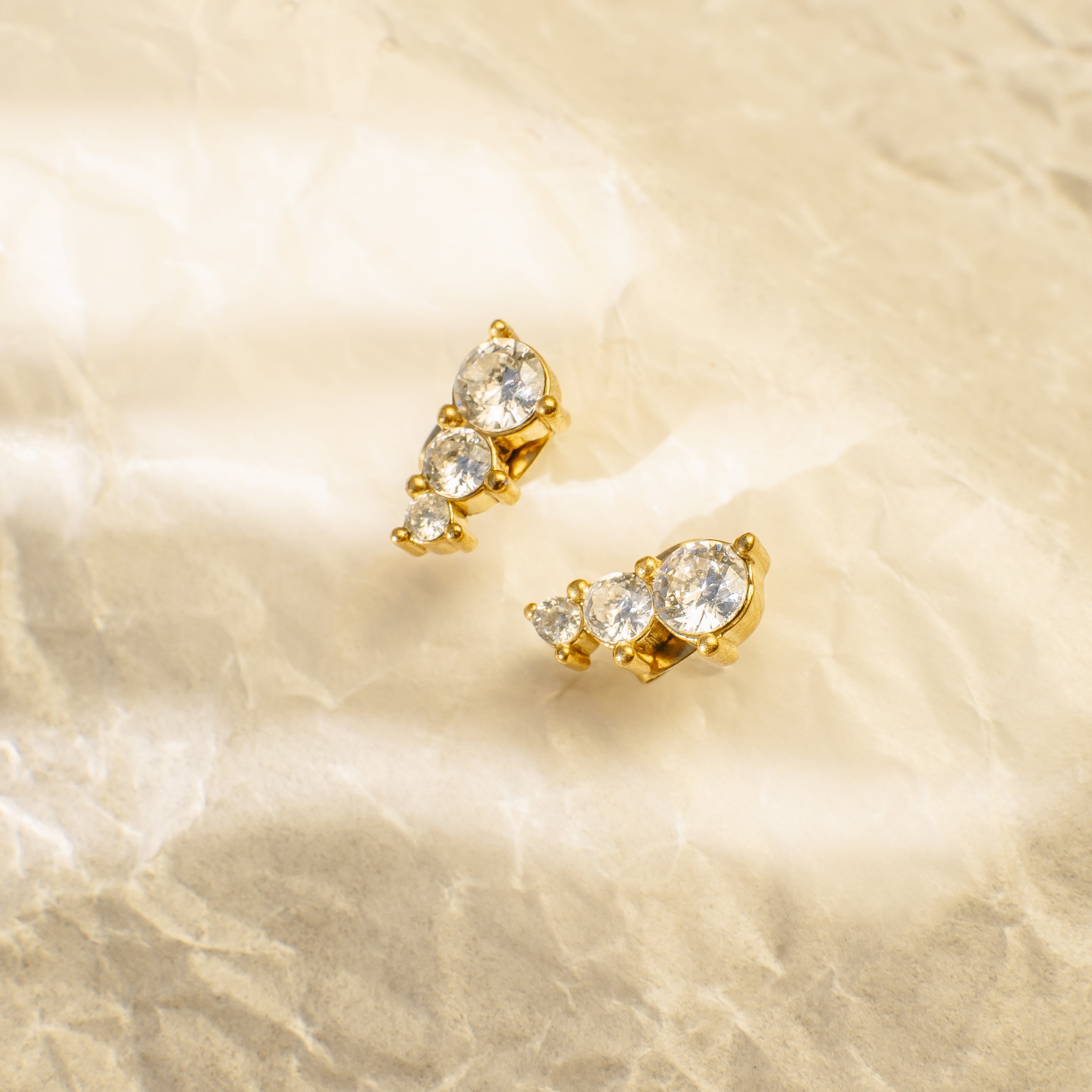 Sparkle from every angle with the Dita zirconia stud earrings. Featuring three zirconia stones in descending sizes, these studs create a subtle, elegant gradient that adds a refined touch to any look.