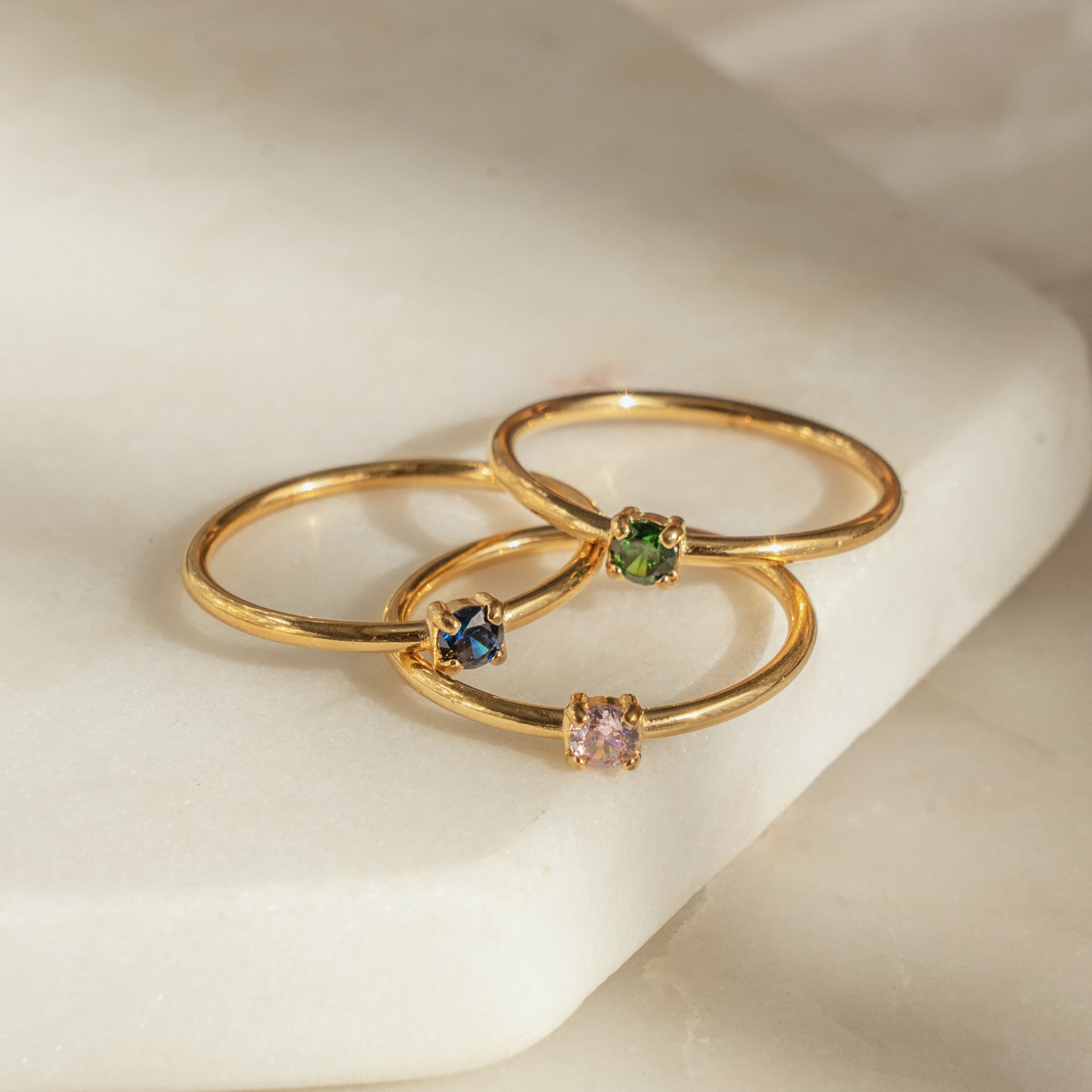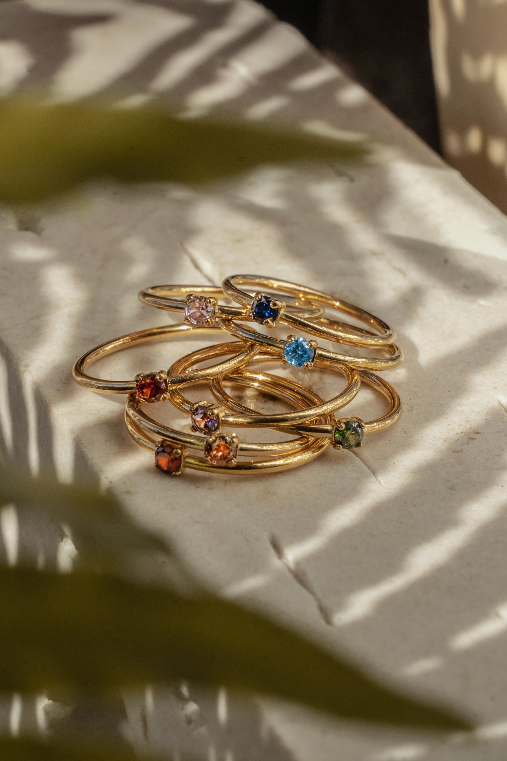 Add a touch of elegance to any outfit with the Elvira Ring. Made with a stunning gold band and adorned with a colorful zirconia, this ring is the perfect statement piece. Stand out from the crowd and add a touch of sophistication to your jewelry collection. What's your colour?