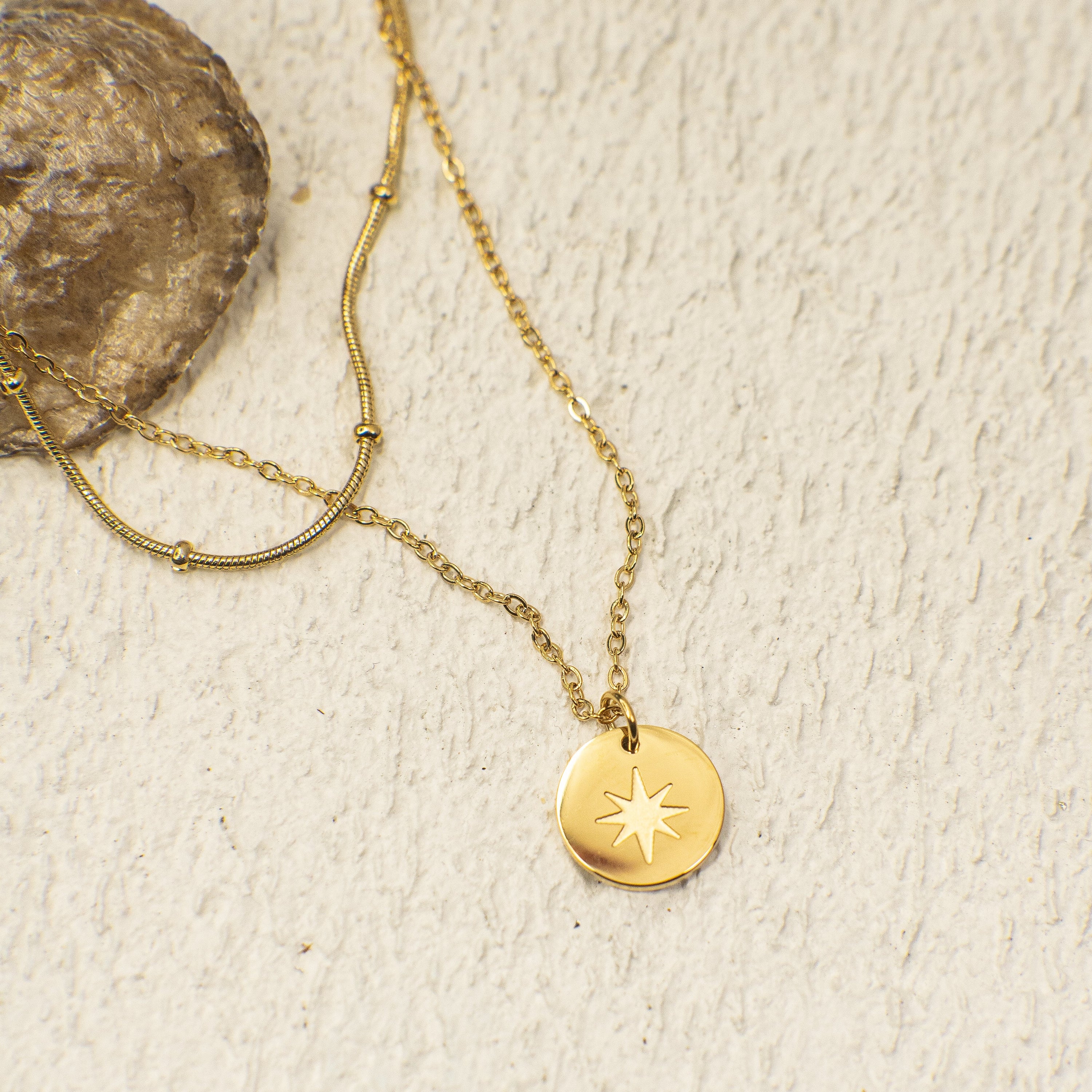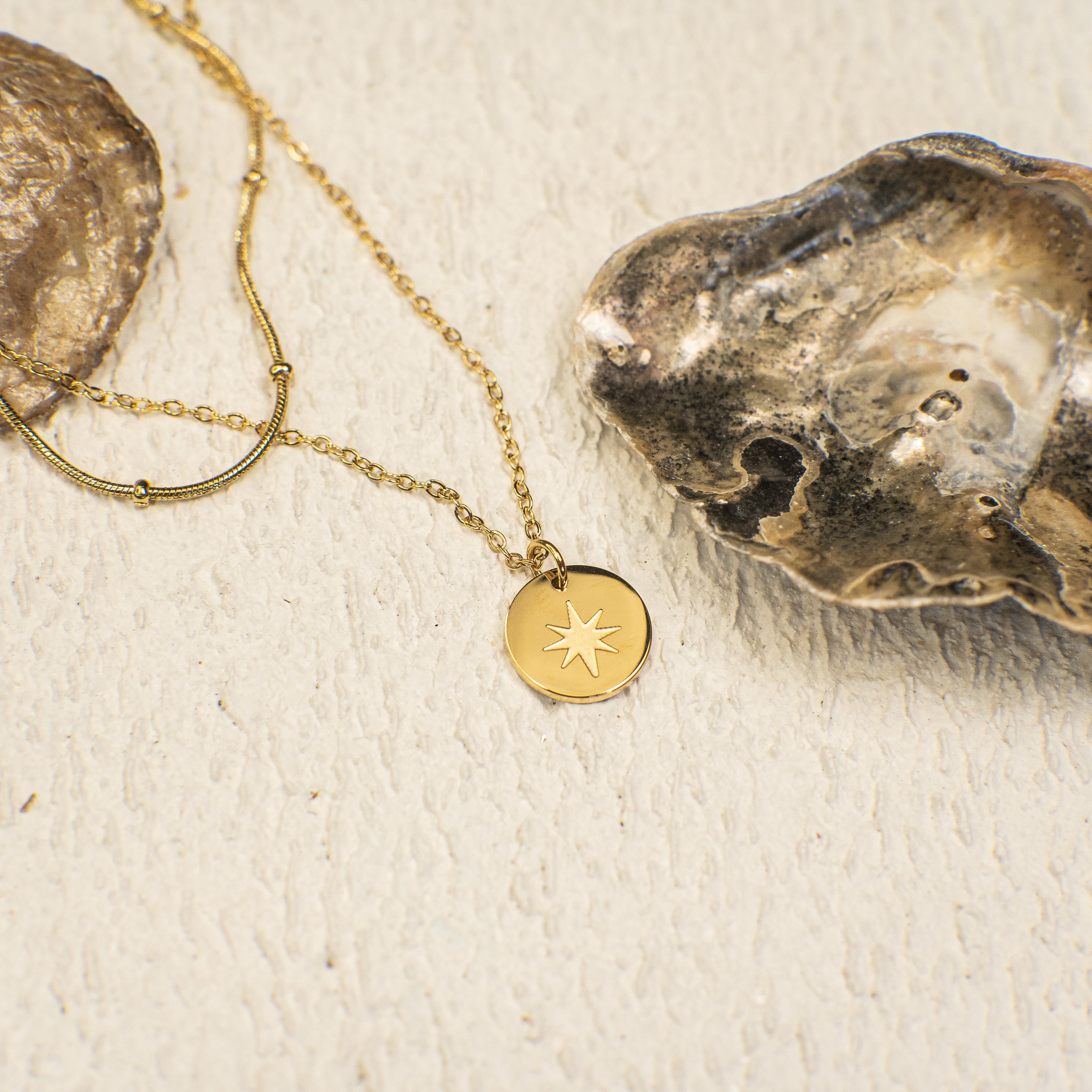 Shine in every layer with the Fenrir Star Necklace — a celestial gold design featuring a radiant starburst charm and textured chains. Effortlessly versatile, it’s perfect for stacking, styling, and stargazing.