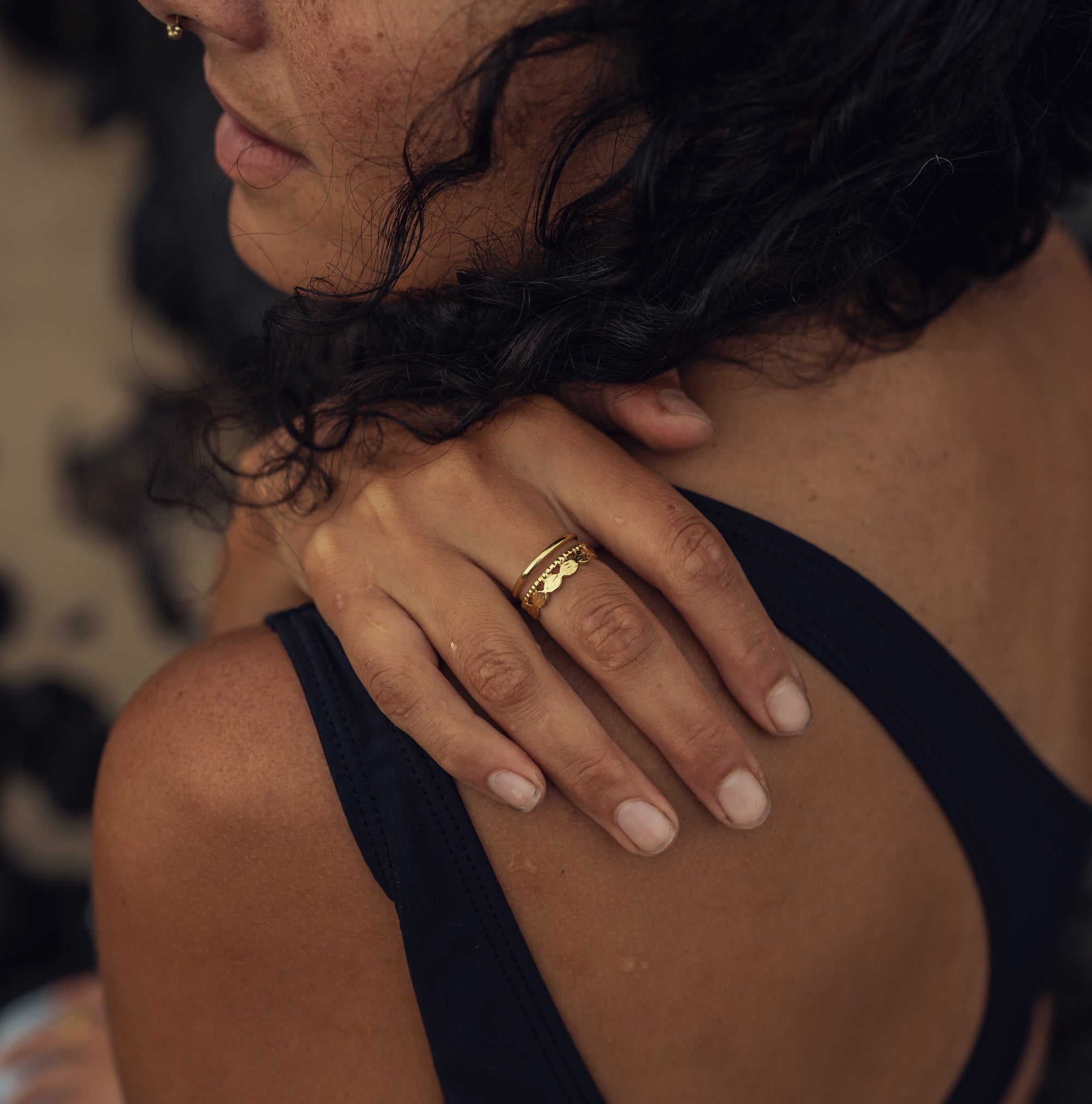 Expertly crafted, the Hammered Circle Ring is a timeless piece that blends modern design with classic techniques. The hammered texture creates a unique finish, adding dimension and character to any outfit. This ring is durable and versatile, perfect for everyday wear.