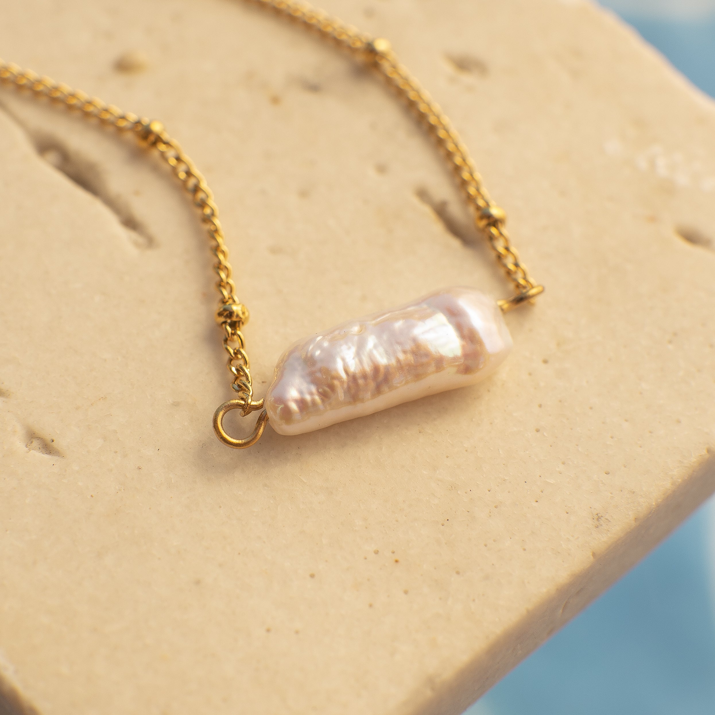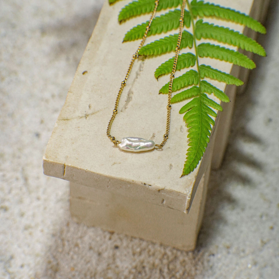 A striking baroque pearl takes centre stage in the Perseus Necklace, resting on a fine gold-toned chain with delicate beaded detailing. Each pearl is one of a kind, giving you a truly unique piece to elevate your everyday look.