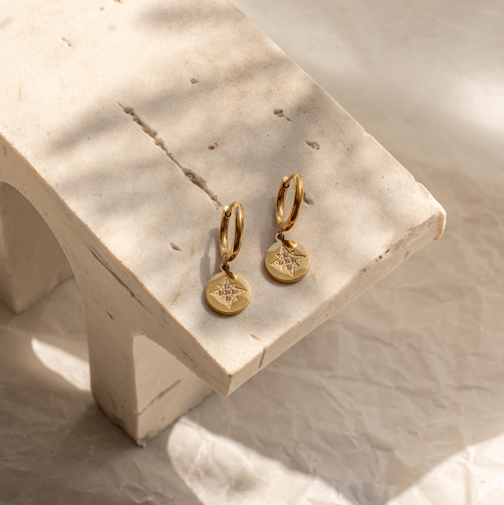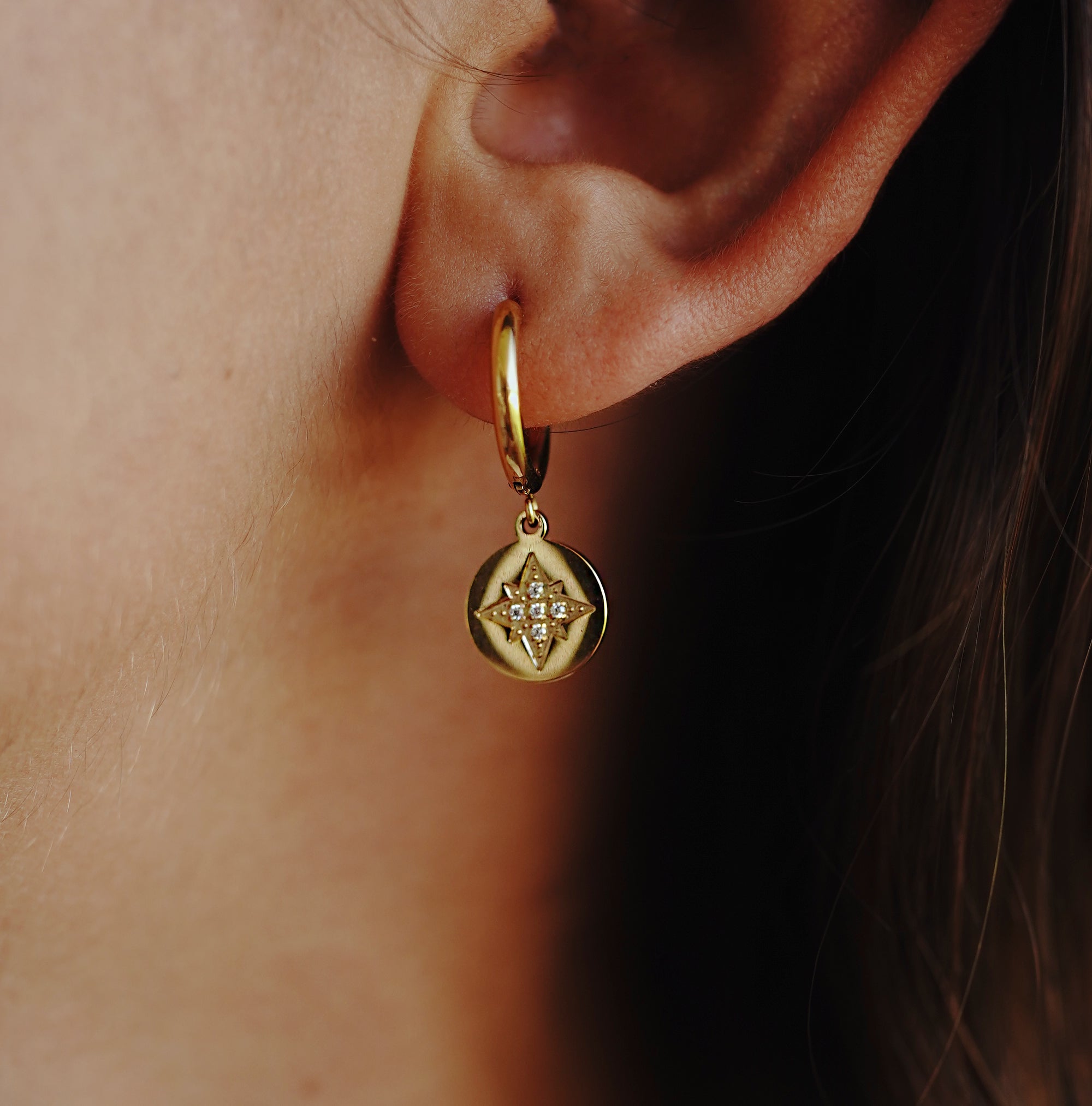 Add a touch of elegance to your outfit with our Roisin Huggie earrings. Featuring a star drop design embellished with sparkling cubic zirconia, these earrings are perfect for any occasion.
