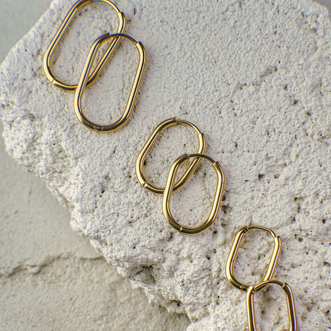 The hoops you’ll reach for day after day. Thorne showcases a sleek oval silhouette in a polished gold finish, available in three stackable sizes — perfect to wear solo, double up, or create a full stack. Subtle or statement, there’s a Thorne to suit every mood.